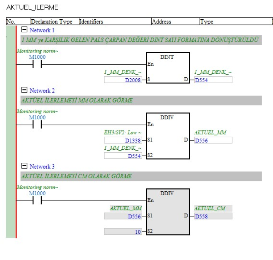 (Örneğin : 3250 / 1000 = 3,25 <( Bu değer 1 mm’ye denk gelen pals değeridir. )