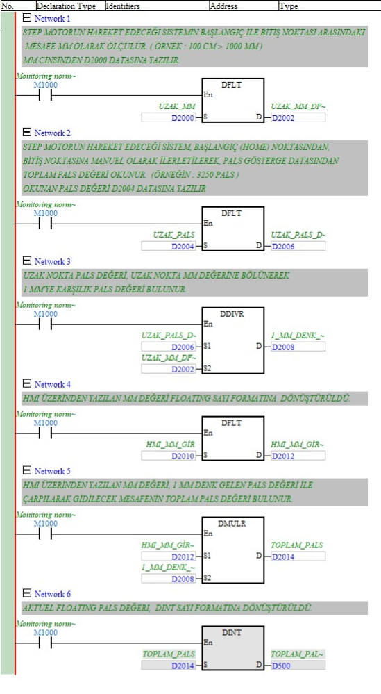 4: Hmi panel üzerinden gidilecek ölçü değeri ile,  1 MM'ye karşılık gelen 3,25 (Çarpan) değeri ile çarpılarak, gidilecek mesafenin toplam pals değeri bulunur.