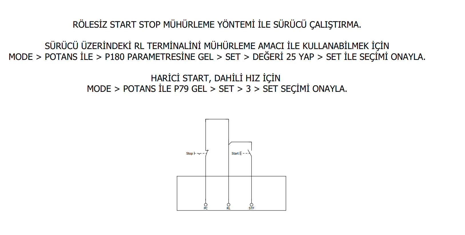 Rölesiz start stop butonu mühürleme yöntemi ile sürücü çalıştırma.